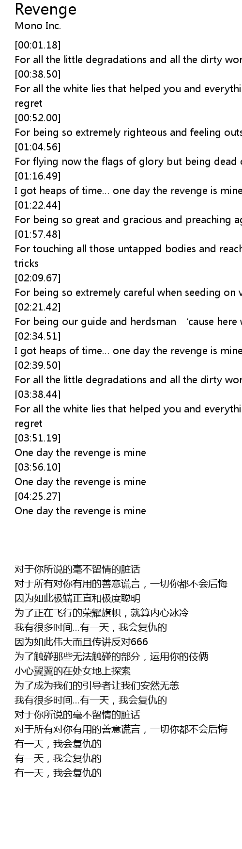 | [04:23.67] | One day the revenge is mine |