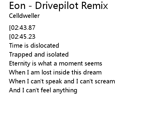 | Song | Eon - Drivepilot Remix |