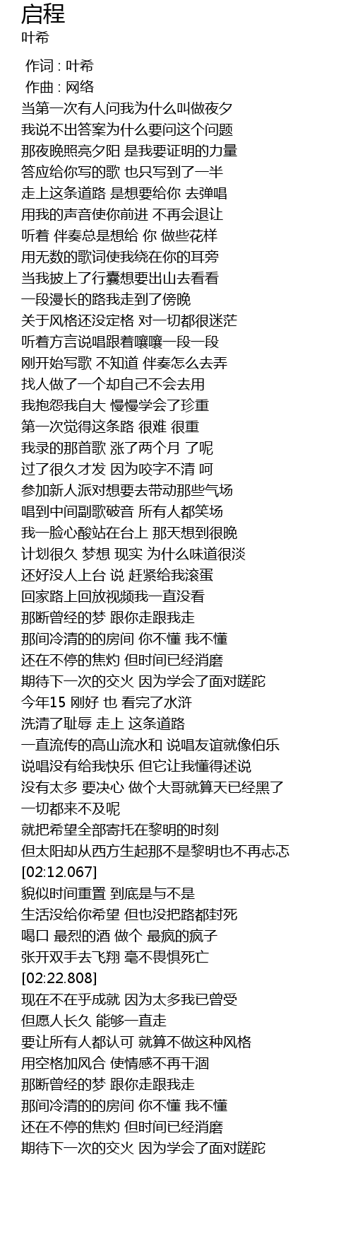 | [00:20.065] | 当第一次有人问我为什么叫做夜夕 |