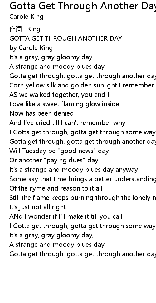 | Gotta get through, gotta get through another day | |