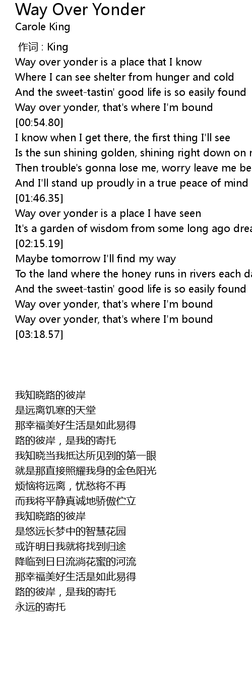 | [00:43.88] | Way over yonder, that's where I'm bound |