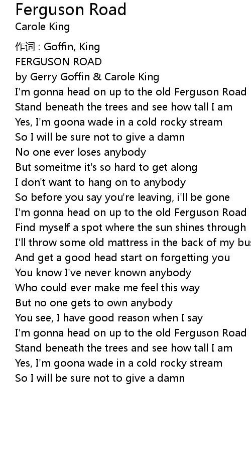 | I' m gonna head on up to the old Ferguson Road | |