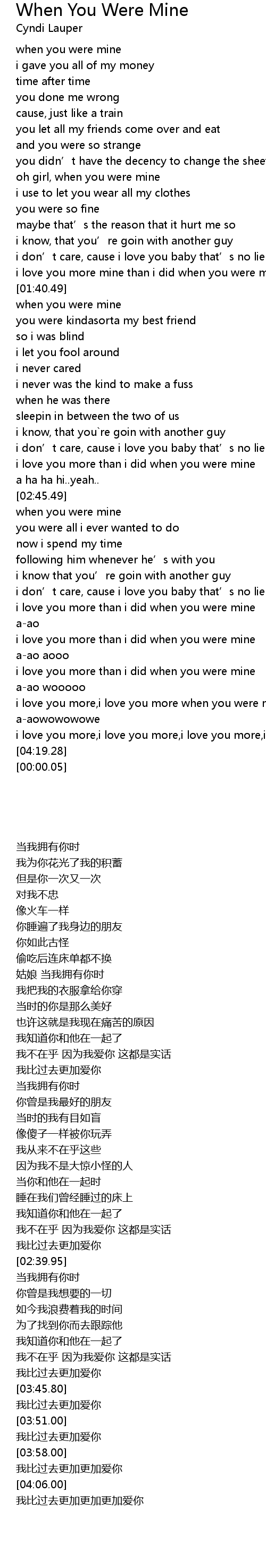 | [04:02.43] | i love you more,i love you more when you were mine |