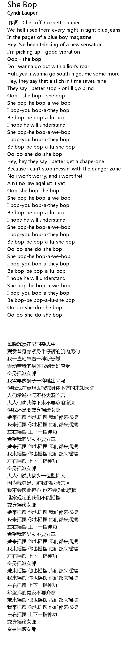| [01:24.83] | She bop-he bop-a-we-bop |