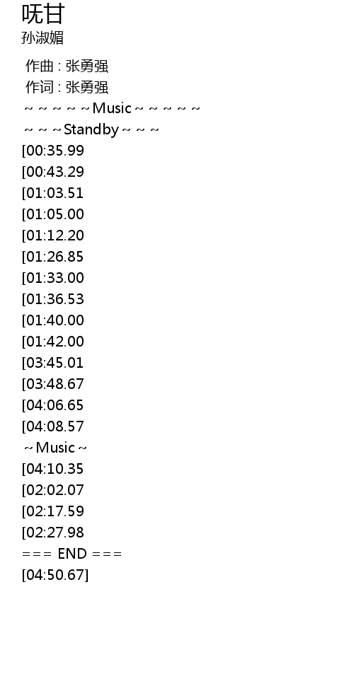 | [00:01.00] | 作词 : 张勇强 |