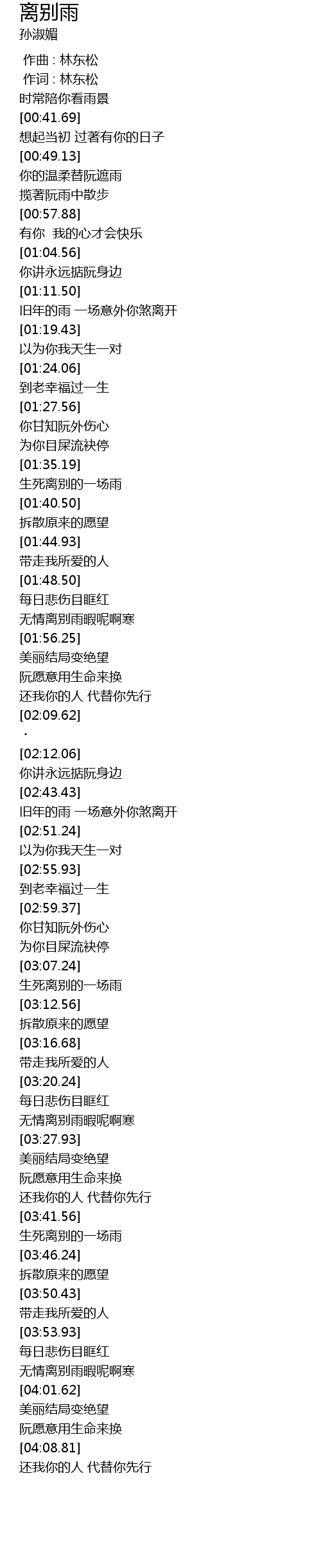 | [02:45.37] | 旧年的雨 一场意外你煞离开 |