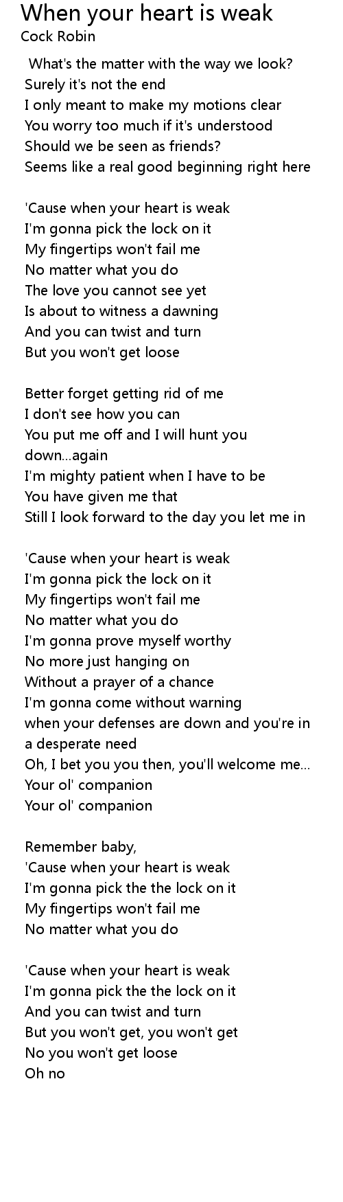 'Cause when your heart is weak |