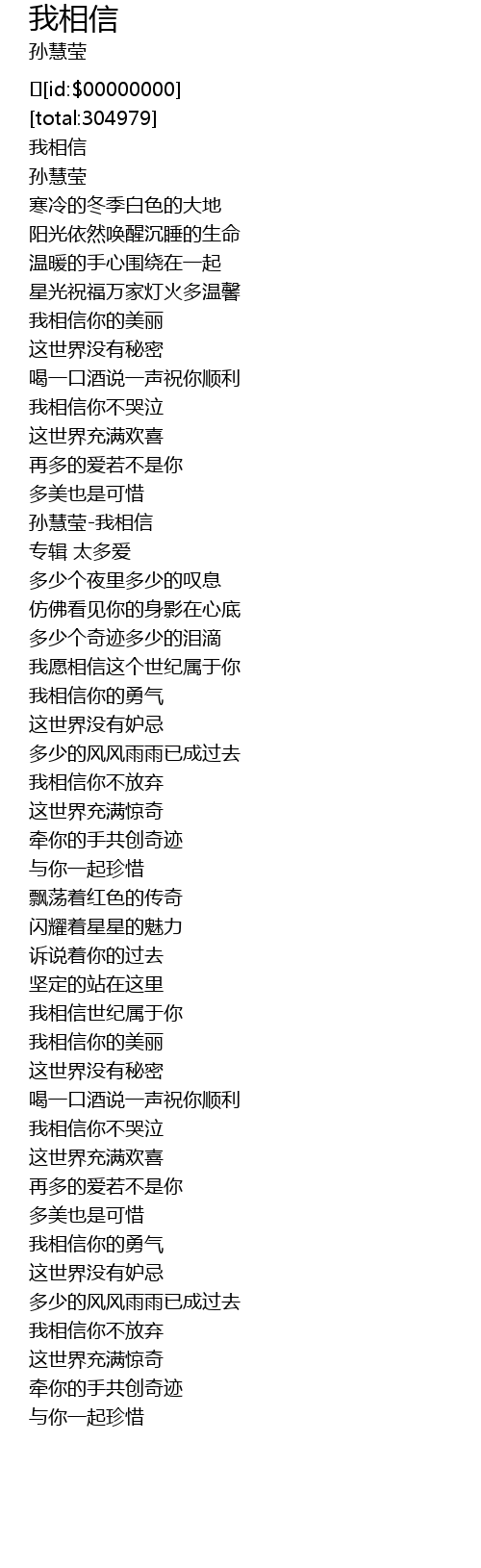 | [01:28.743] | 孙慧莹-我相信 |