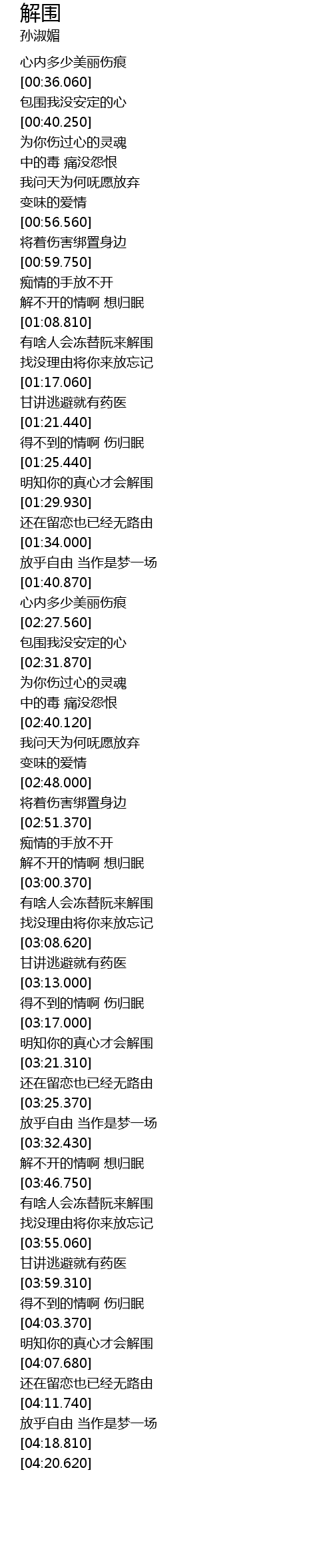 | [02:36.310] | 中的毒 痛没怨恨 |