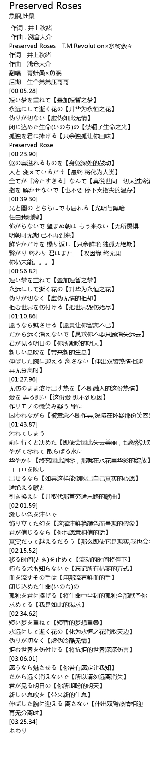 | [00:20.66] | Preserved Rose |