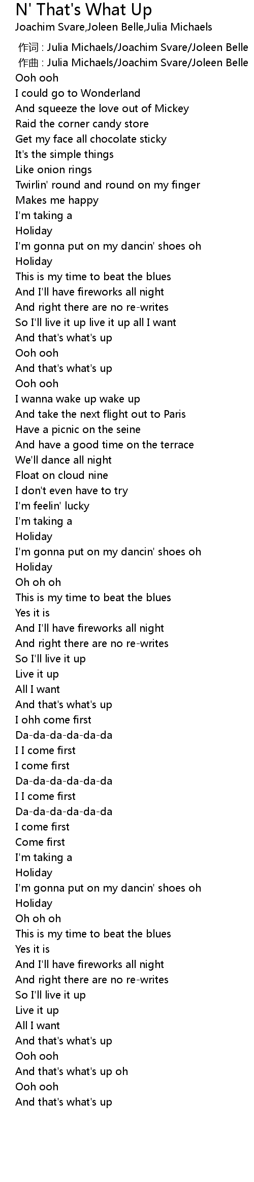 | [01:01.79] | And that's what's up |