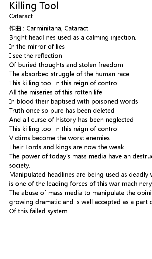 | This killing tool in this reign of control | |