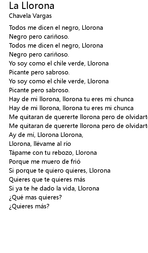 | Hay de mi llorona, llorona tu eres mi chunca | |