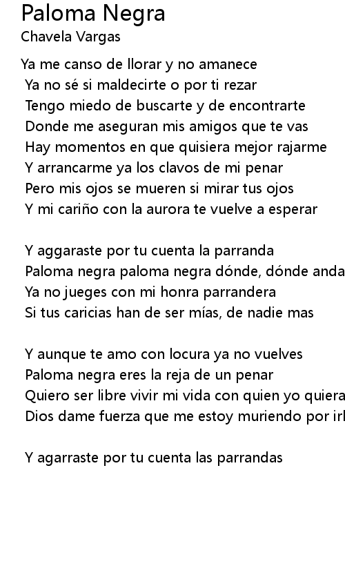 | Paloma negra paloma negra dó nde, dó nde andará s? | |