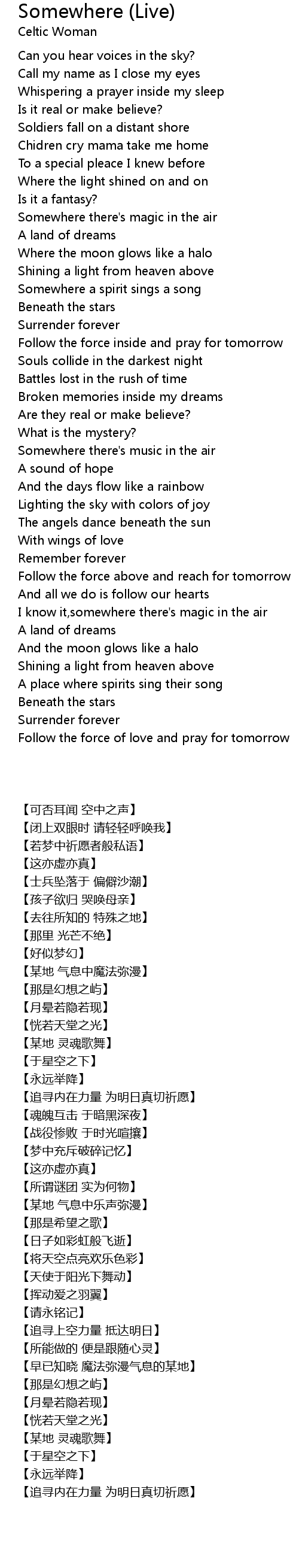Somewhere a spirit sings a song |