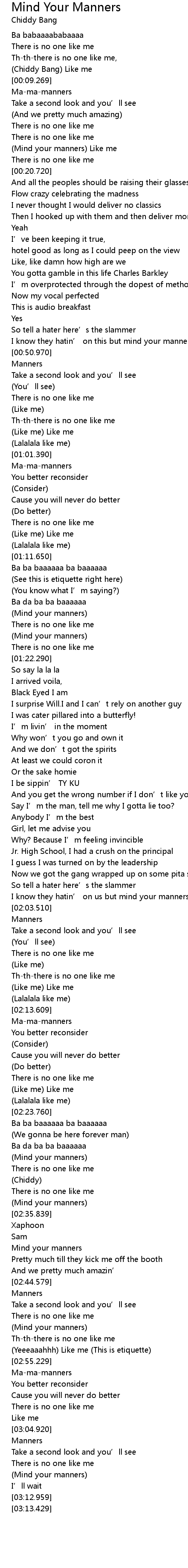 | [00:48.620] | I know they hatin’ on this but mind your manners |
