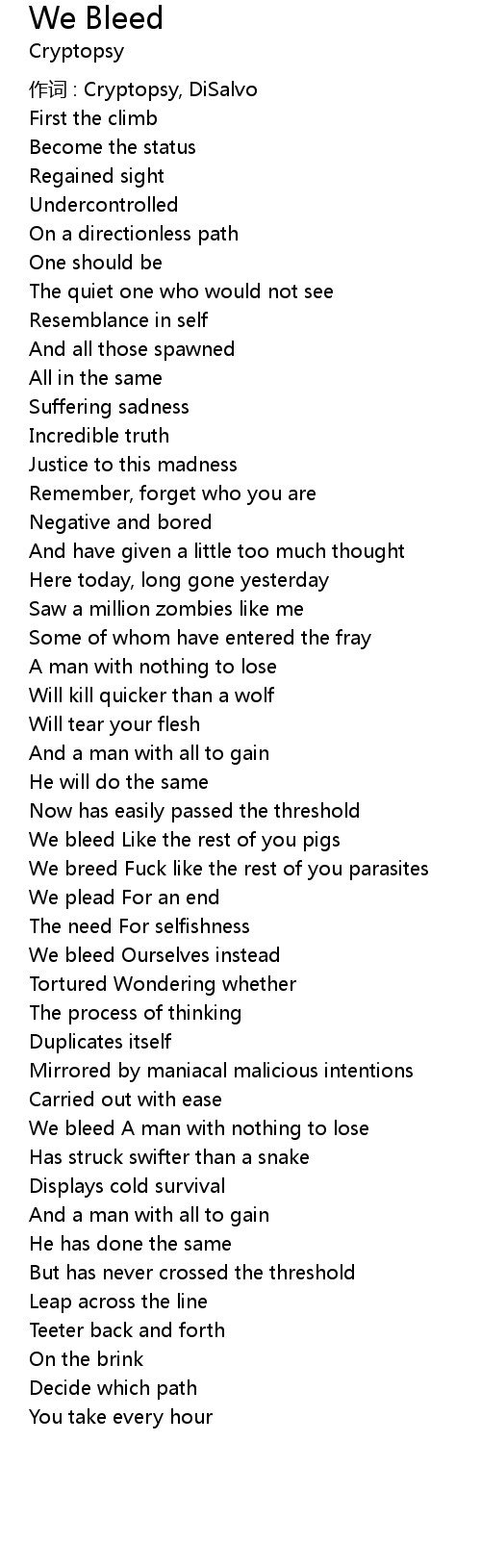 | 作词 : Cryptopsy, DiSalvo | |