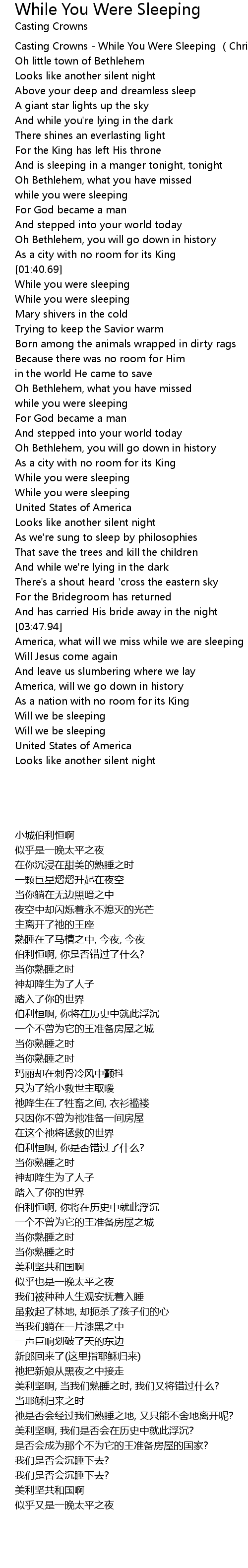 | [00:01.09] | Casting Crowns - While You Were Sleeping (Christmas Version) |