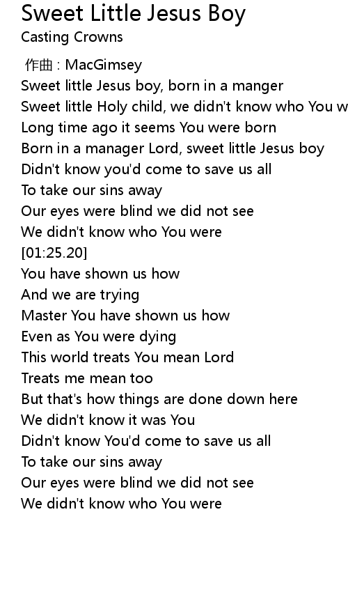 | [00:30.17] | Sweet little Holy child, we didn't know who You were |
