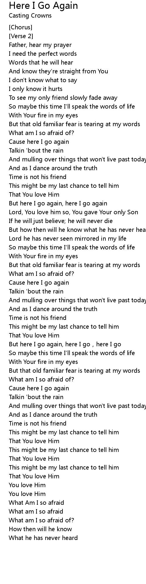 | [02:08.000] | But that old familiar fear is tearing at my words |