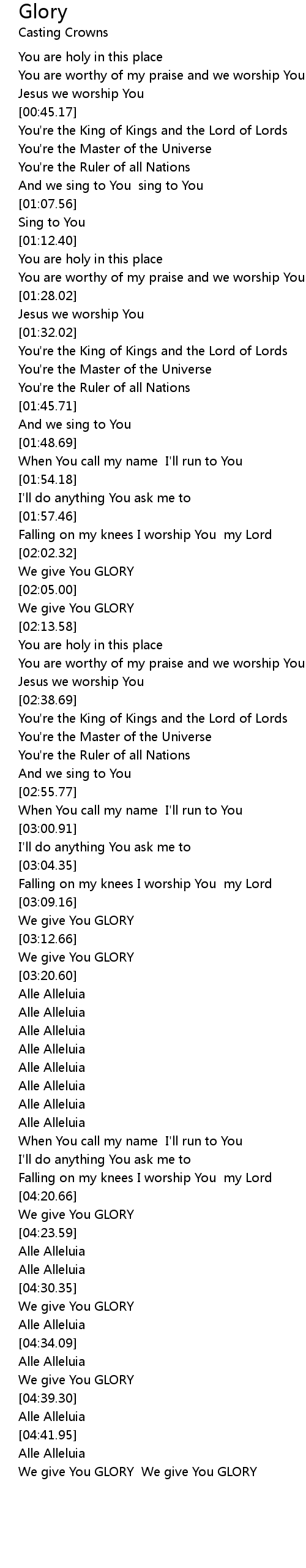 And we sing to You sing to You |