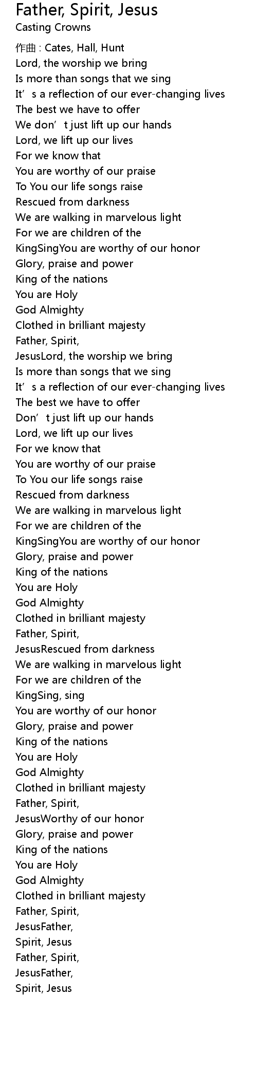 | Father, Spirit, | |