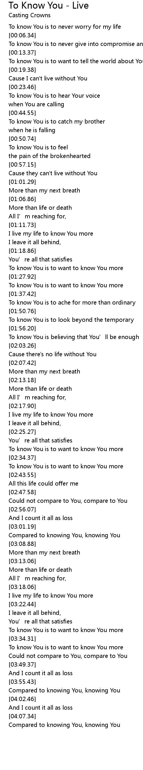 | [01:57.88] | To know You is believing that You’ll be enough |