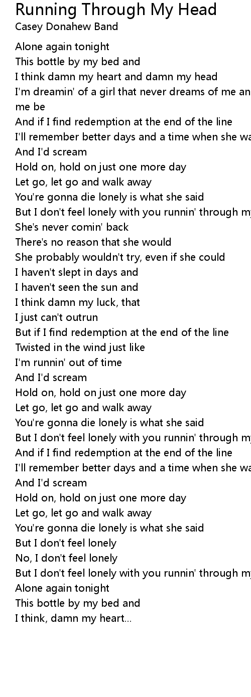 But I don't feel lonely with you runnin' through my head |