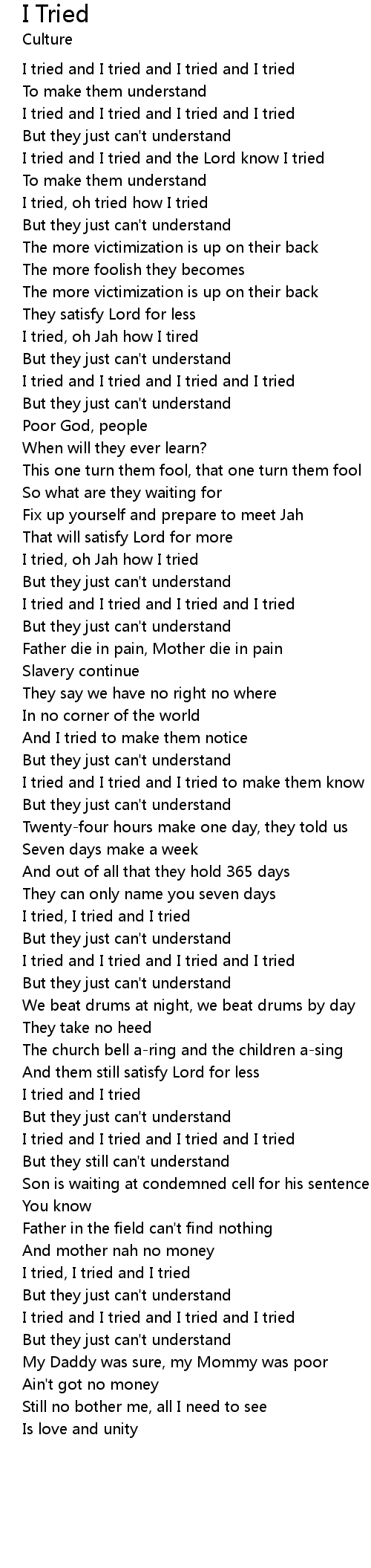 I tried and I tried |