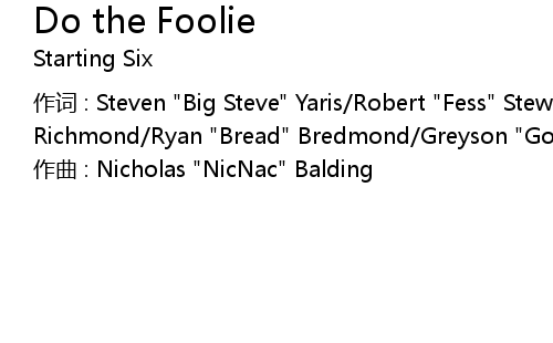 | 作词 : Steven "Big Steve" Yaris/Robert "Fess" Stewart/Jared "Riggsz" Richmond/Ryan "Bread" Bredmond/Greyson "Goose" Tarantino | |