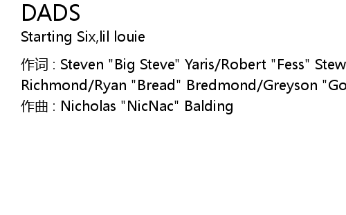 | 作词 : Steven "Big Steve" Yaris/Robert "Fess" Stewart/Jared "Riggsz" Richmond/Ryan "Bread" Bredmond/Greyson "Goose" Tarantino/lil louie | |