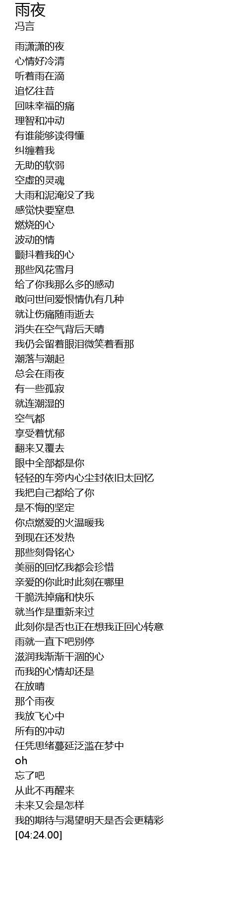 | [02:08.30] | zǒng huì zài yǔ yè |