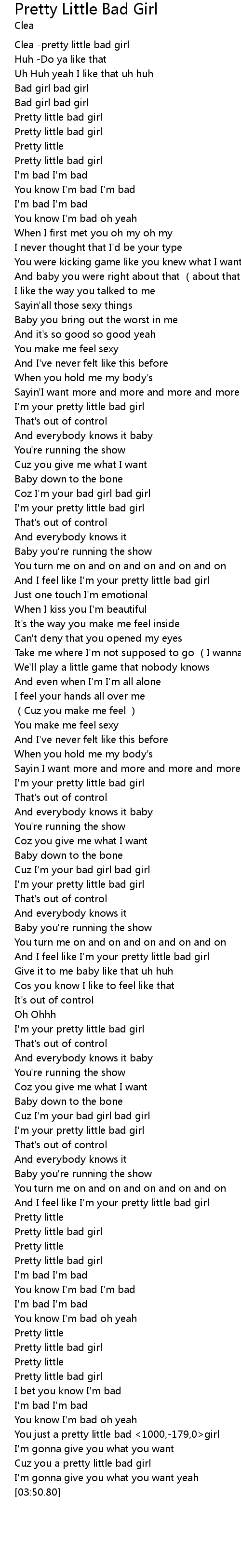 | [03:25.260] | Pretty little bad girl |