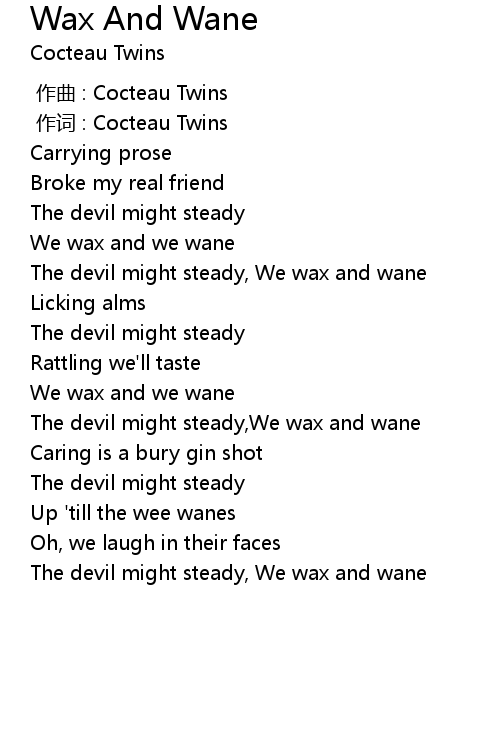 | [01:50.75] | The devil might steady,We wax and wane |