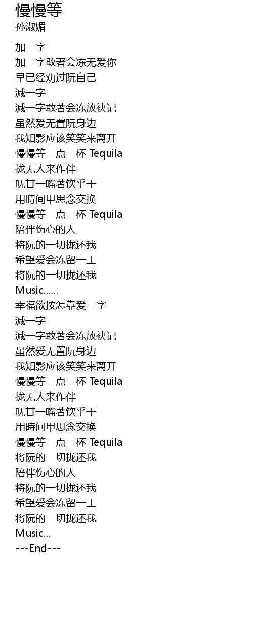 | [02:42.97] | 慢慢等 点一杯 Tequila |
