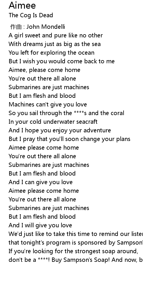 | [00:58.60] | Aimee, please come home |
