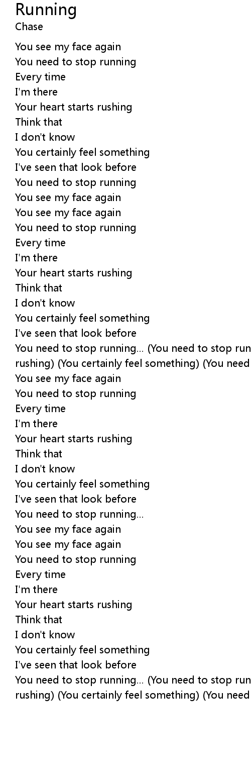 You need to stop running... (You need to stop running) (Your heart starts rushing) (You certainly feel something) (You need to stop running) |