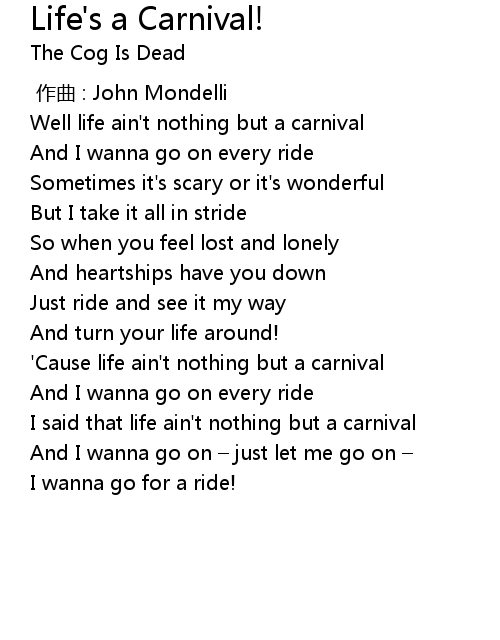 | [00:54.13] | ' Cause life ain' t nothing but a carnival |