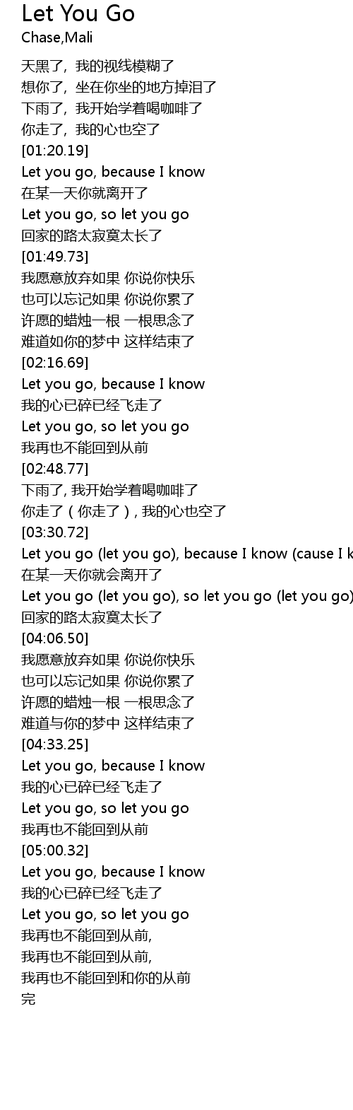 | [03:53.01] | Let you go (let you go), so let you go (let you go) |