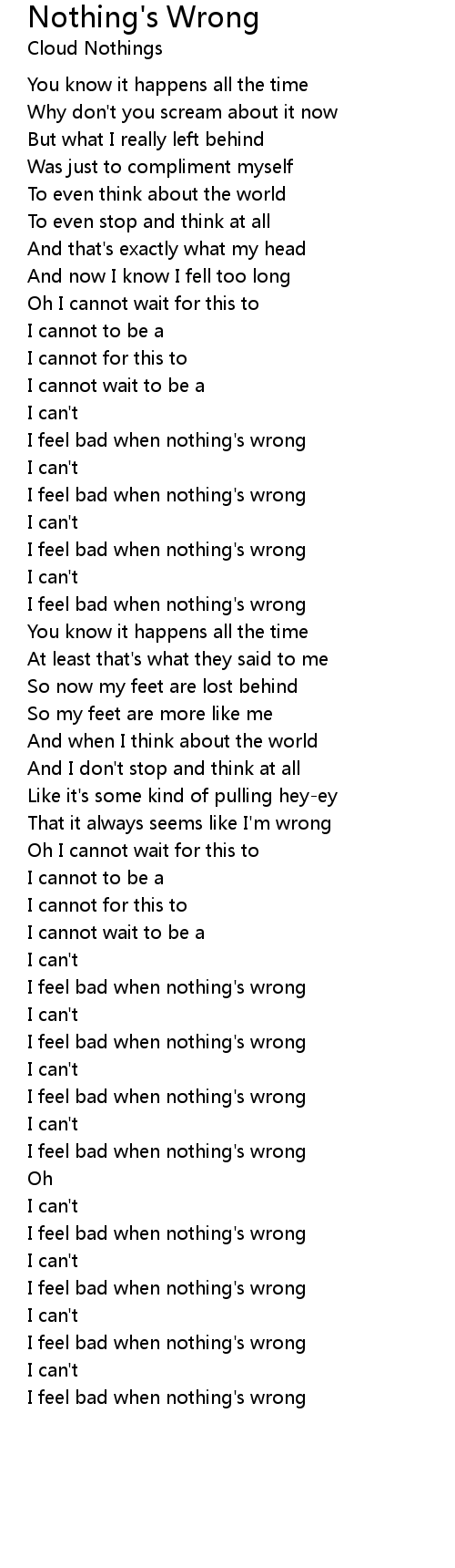 I feel bad when nothing's wrong |