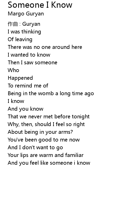 | And you feel like someone i know |