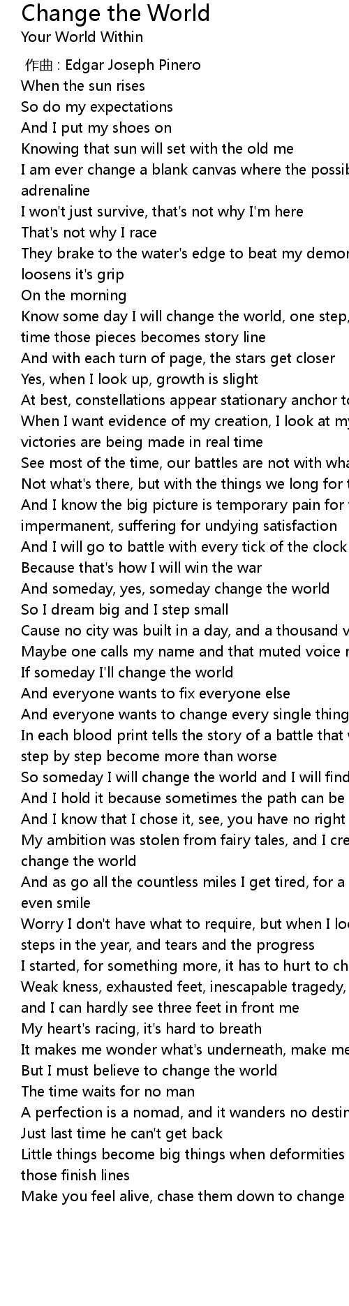| [02:50.421] | But I must believe to change the world |