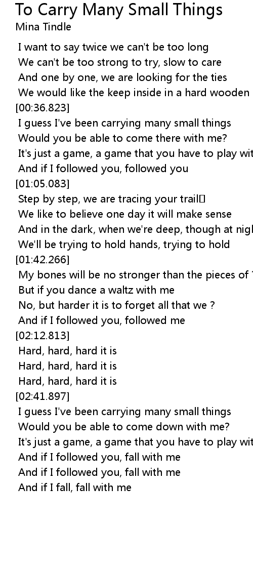 | [00:37.294] | I guess I' ve been carrying many small things |