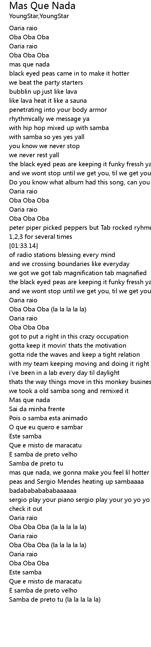 | [02:53.90] | mas que nada, we gonna make you feel lil hotter |