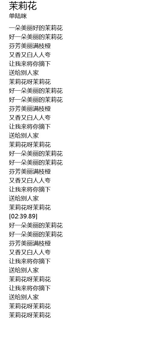 | [02:29.89] | 茉莉花呀茉莉花 |