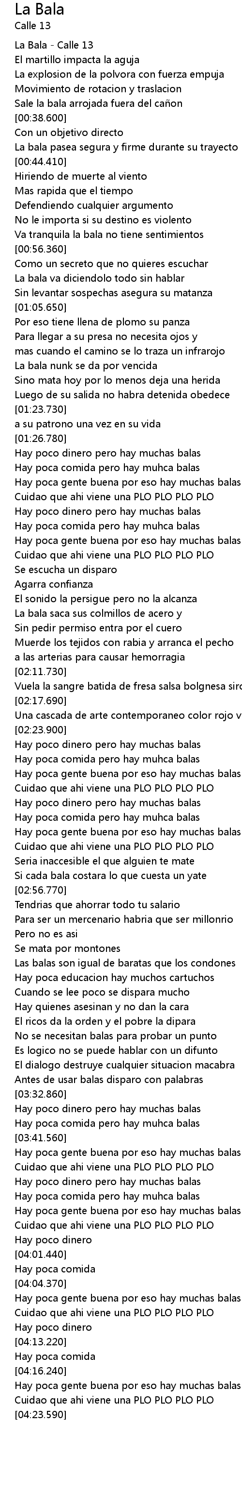 | [00:53.830] | Va tranquila la bala no tiene sentimientos |