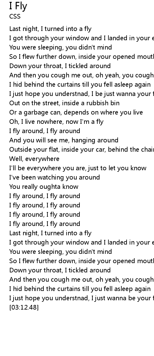 | [01:42.12] | Last night, I turned into a fly |