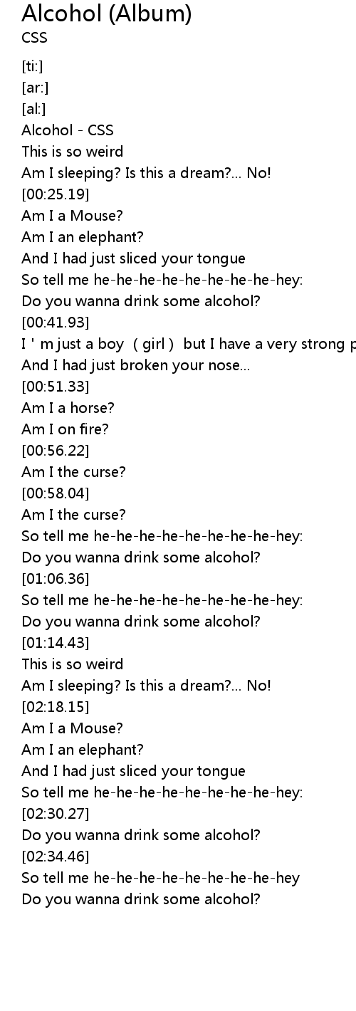 | [02:31.48] | Do you wanna drink some alcohol? |