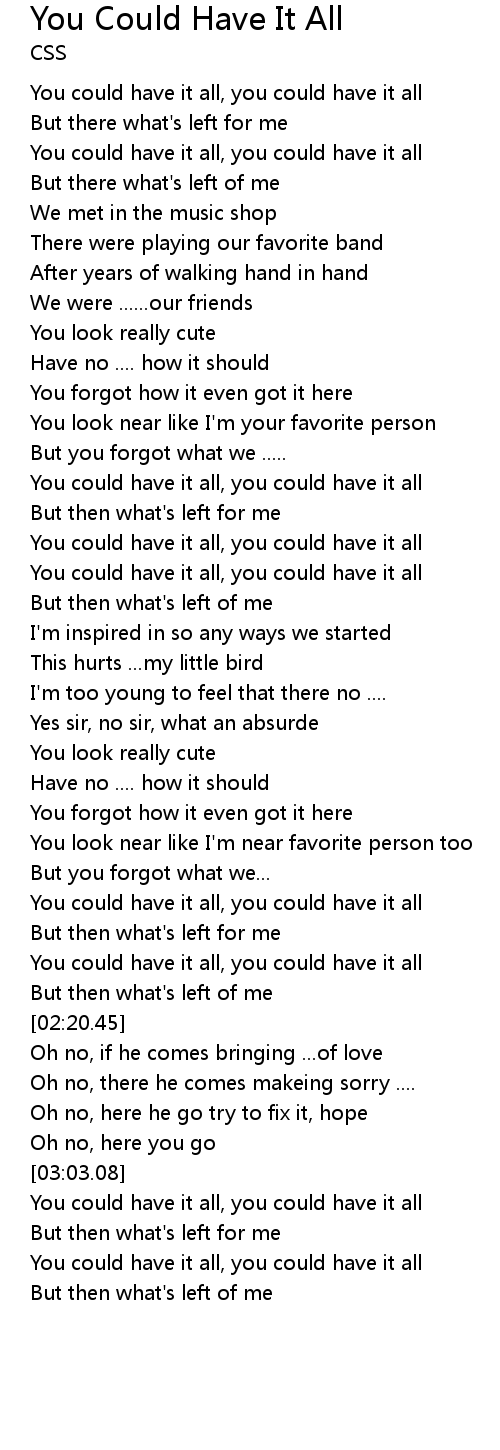 You could have it all, you could have it all |