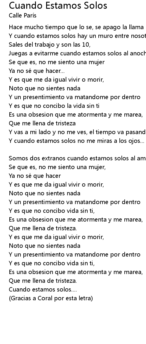| Y cuando estamos solos no me miras a los ojos... siento que te alejas mas de mi, | |